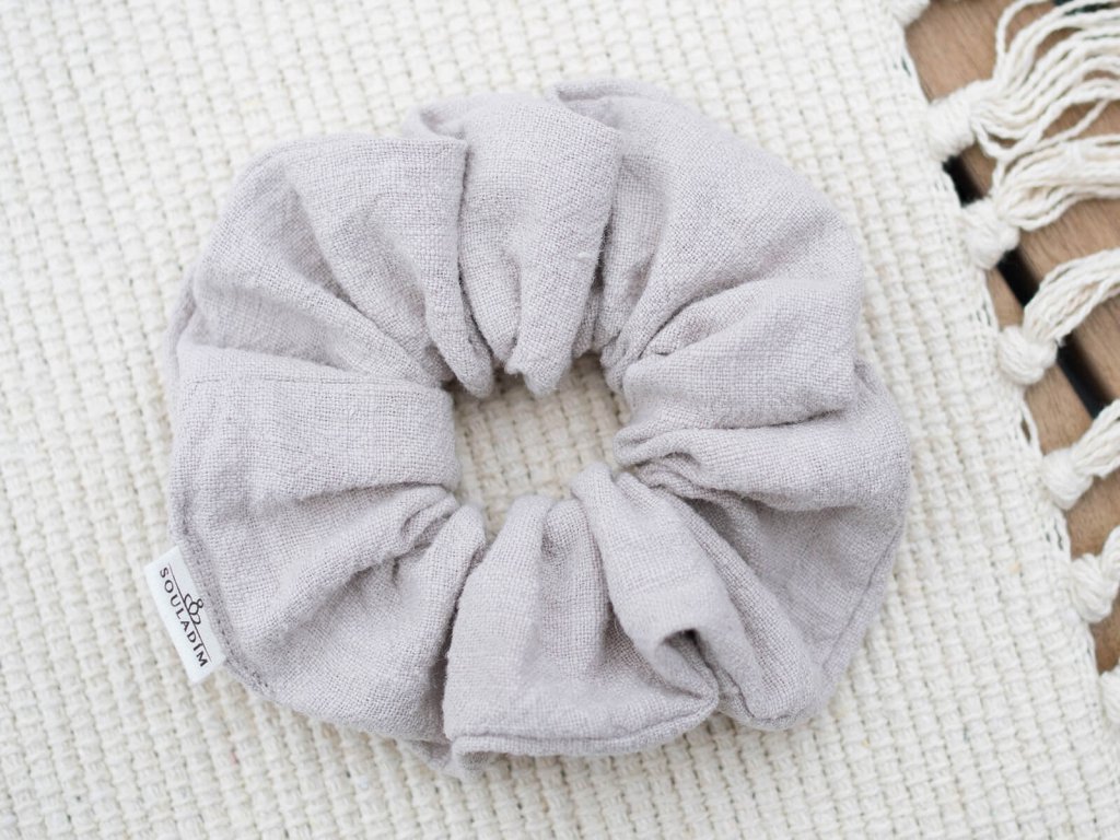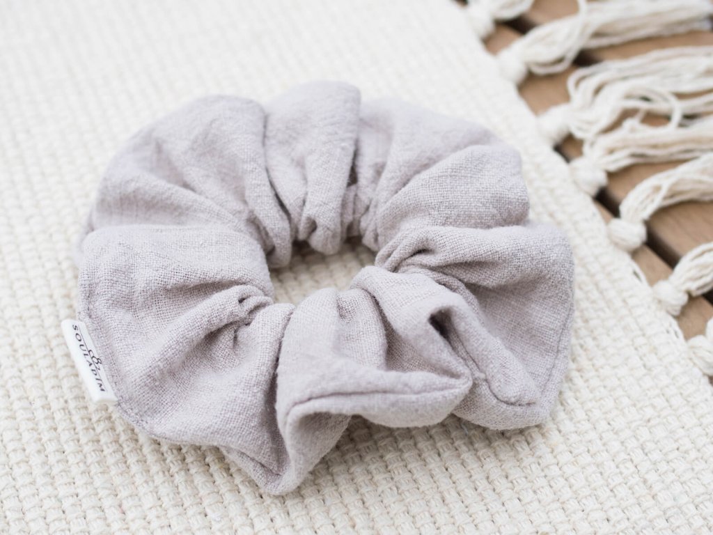 Šedobéžová scrunchie je ideální na běžné nošení, do práce, na jógu i na večerní akce. Jemný, neutrální odstín vyzařuje harmonii a klid, které jsou v dokonalém souladu s filozofií značky SOULADÍM – přinést rovnováhu tělu i duši.